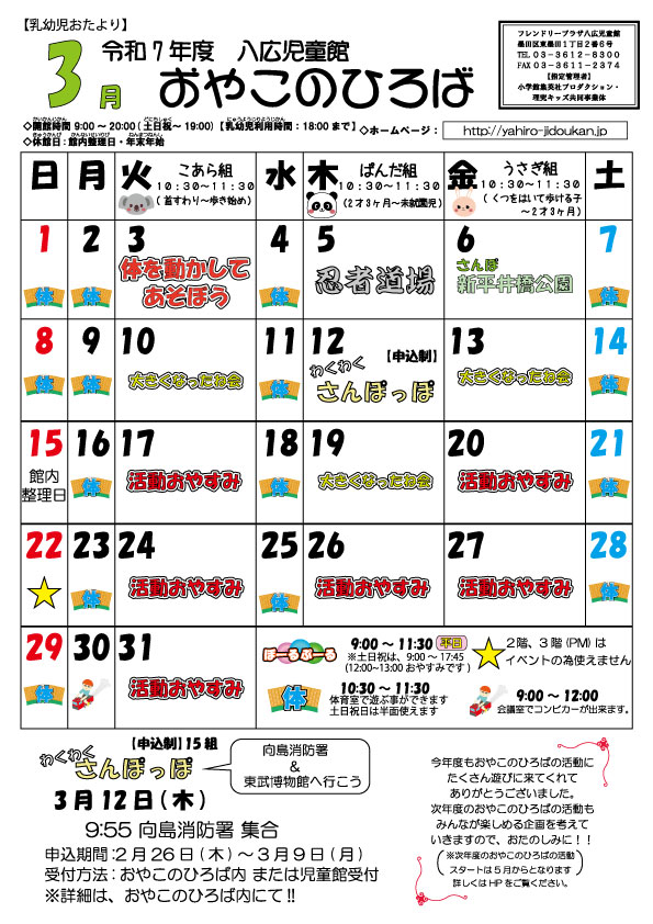 【3月】乳幼児のおたより